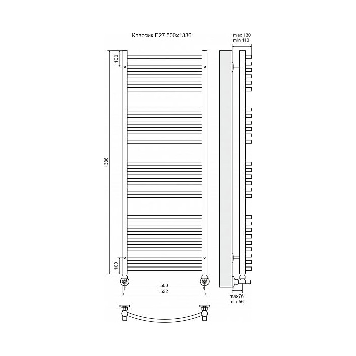 Водяной полотенцесушитель Terminus Классик П27 500x1386 4620768886737 с нижним подключением. Для производства полотенцесушителя используется только высококачественная нержавеющая сталь марки AISI 304L с высоким содержанием легирующих элементов, Ni и Cr, это позволяет изделиям сохранять стойкость к агрессивным коррозийным средам, что существенно продлевает срок их эксплуатации. Толщина стенки используемой трубы не менее 2 мм, это обеспечивает 10-ти кратный запас прочности, труба устойчива к резким перепадам давления в системе водоснабжения!