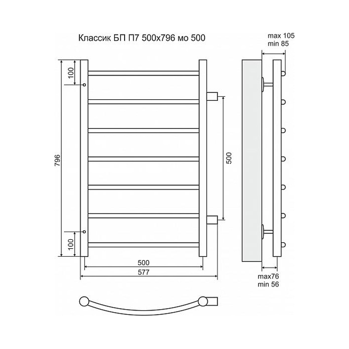 Водяной полотенцесушитель Terminus Классик П7 500x796 4670030726193 с боковым подключением. Для производства полотенцесушителя используется только высококачественная нержавеющая сталь марки AISI 304L с высоким содержанием легирующих элементов, Ni и Cr, это позволяет изделиям сохранять стойкость к агрессивным коррозийным средам, что существенно продлевает срок их эксплуатации. Толщина стенки используемой трубы не менее 2 мм, это обеспечивает 10-ти кратный запас прочности, труба устойчива к резким перепадам давления в системе водоснабжения!