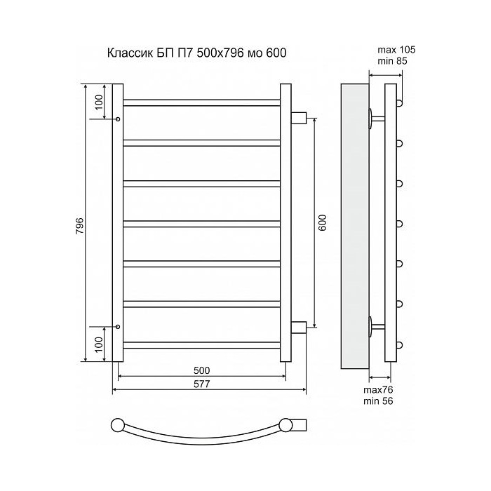 Водяной полотенцесушитель Terminus Классик П7 500x796 4670030726278 с боковым подключением. Для производства полотенцесушителя используется только высококачественная нержавеющая сталь марки AISI 304L с высоким содержанием легирующих элементов, Ni и Cr, это позволяет изделиям сохранять стойкость к агрессивным коррозийным средам, что существенно продлевает срок их эксплуатации. Толщина стенки используемой трубы не менее 2 мм, это обеспечивает 10-ти кратный запас прочности, труба устойчива к резким перепадам давления в системе водоснабжения!
