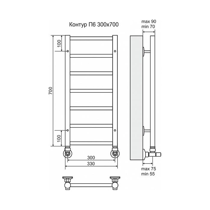 Водяной полотенцесушитель Terminus Контур П6 300x700 4660059582429 Хром