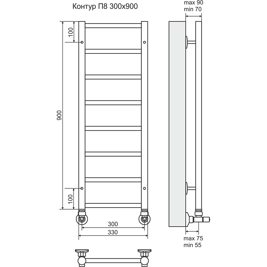 Водяной полотенцесушитель Terminus Контур П8 300х900 4660059582443.