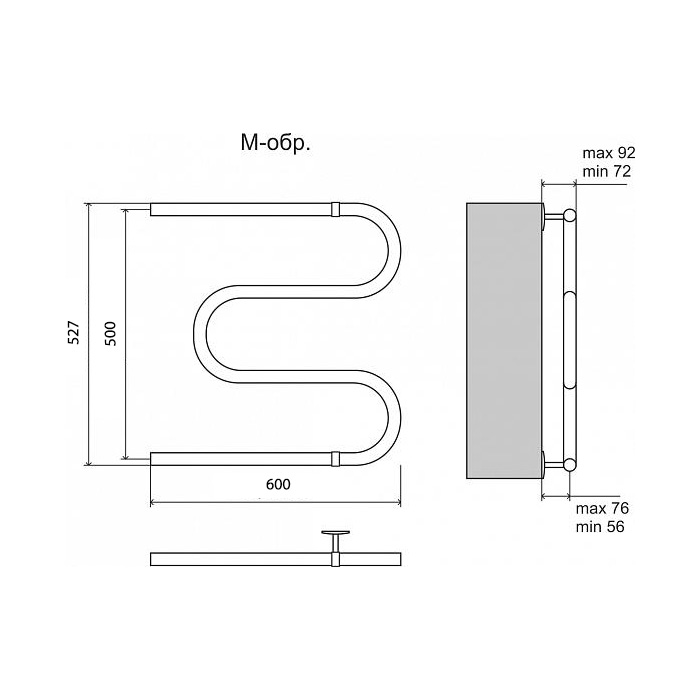 Водяной полотенцесушитель Terminus М-образный 25 500x600 4620768888090 с боковым подключением. Для производства полотенцесушителя используется только высококачественная нержавеющая сталь марки AISI 304L с высоким содержанием легирующих элементов, Ni и Cr, это позволяет изделиям сохранять стойкость к агрессивным коррозийным средам, что существенно продлевает срок их эксплуатации. Толщина стенки используемой трубы не менее 2 мм, это обеспечивает 10-ти кратный запас прочности, труба устойчива к резким перепадам давления в системе водоснабжения!