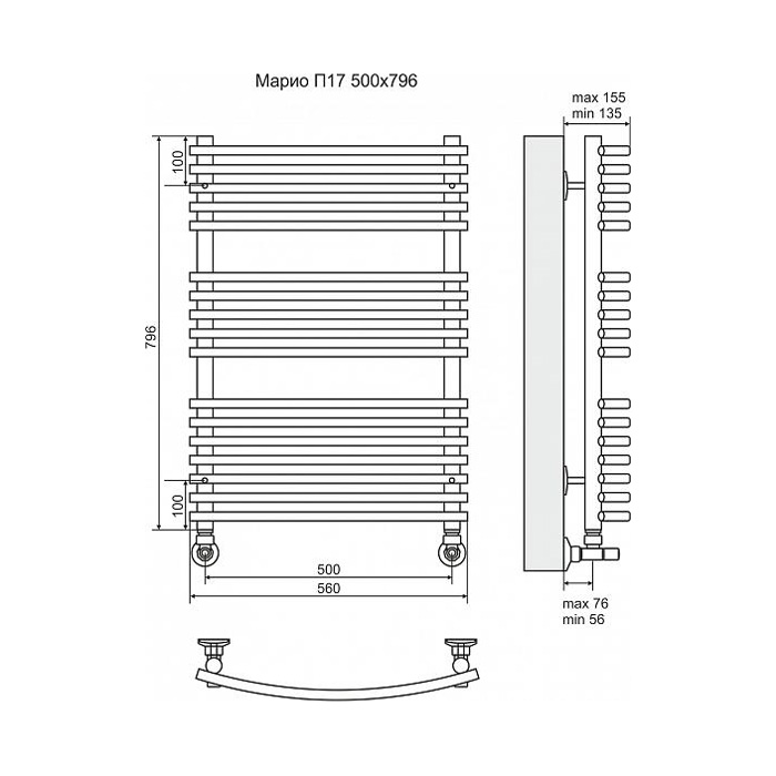 Водяной полотенцесушитель Terminus Марио П17 500x796 4620768886799 с нижним подключением. Для производства полотенцесушителя используется только высококачественная нержавеющая сталь марки AISI 304L с высоким содержанием легирующих элементов, Ni и Cr, это позволяет изделиям сохранять стойкость к агрессивным коррозийным средам, что существенно продлевает срок их эксплуатации. Толщина стенки используемой трубы не менее 2 мм, это обеспечивает 10-ти кратный запас прочности, труба устойчива к резким перепадам давления в системе водоснабжения!