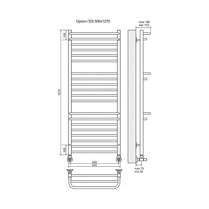 Водяной полотенцесушитель Terminus Орион П20 500x1270 4620768888595 Хром