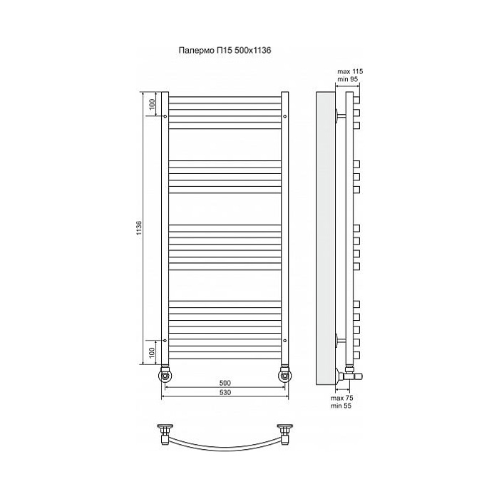 Водяной полотенцесушитель Terminus Палермо П15 500x1136 4620768886515 с нижним подключением. Для производства полотенцесушителя используется только высококачественная нержавеющая сталь марки AISI 304L с высоким содержанием легирующих элементов, Ni и Cr, это позволяет изделиям сохранять стойкость к агрессивным коррозийным средам, что существенно продлевает срок их эксплуатации. Толщина стенки используемой трубы не менее 2 мм, это обеспечивает 10-ти кратный запас прочности, труба устойчива к резким перепадам давления в системе водоснабжения!