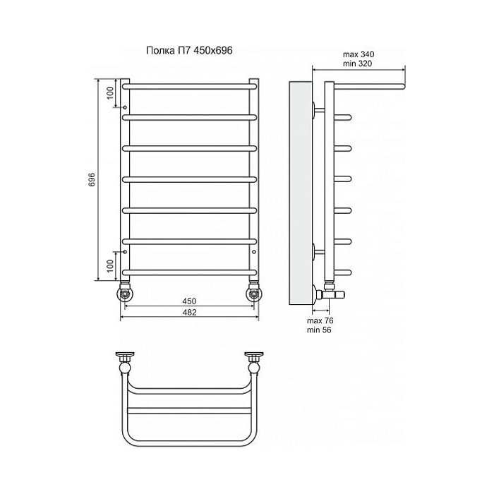 Водяной полотенцесушитель Terminus Полка П7 450x696 4670030723154 с полкой Хром
