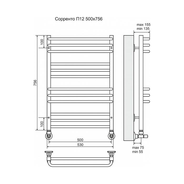 Водяной полотенцесушитель Terminus Соренто П12 500x756 4620768882326 с нижним подключением. Для производства полотенцесушителя используется только высококачественная нержавеющая сталь марки AISI 304L с высоким содержанием легирующих элементов, Ni и Cr, это позволяет изделиям сохранять стойкость к агрессивным коррозийным средам, что существенно продлевает срок их эксплуатации. Толщина стенки используемой трубы не менее 2 мм, это обеспечивает 10-ти кратный запас прочности, труба устойчива к резким перепадам давления в системе водоснабжения!