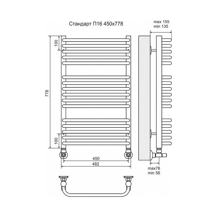 Водяной полотенцесушитель Terminus Стандарт П16 450x778 4620768886195 с нижним подключением. Для производства полотенцесушителя используется только высококачественная нержавеющая сталь марки AISI 304L с высоким содержанием легирующих элементов, Ni и Cr, это позволяет изделиям сохранять стойкость к агрессивным коррозийным средам, что существенно продлевает срок их эксплуатации. Толщина стенки используемой трубы не менее 2 мм, это обеспечивает 10-ти кратный запас прочности, труба устойчива к резким перепадам давления в системе водоснабжения!