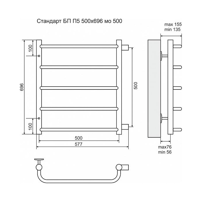 Водяной полотенцесушитель Terminus Стандарт П5 500x696 4670030725301 с боковым подключением. Для производства полотенцесушителя используется только высококачественная нержавеющая сталь марки AISI 304L с высоким содержанием легирующих элементов, Ni и Cr, это позволяет изделиям сохранять стойкость к агрессивным коррозийным средам, что существенно продлевает срок их эксплуатации. Толщина стенки используемой трубы не менее 2 мм, это обеспечивает 10-ти кратный запас прочности, труба устойчива к резким перепадам давления в системе водоснабжения!
