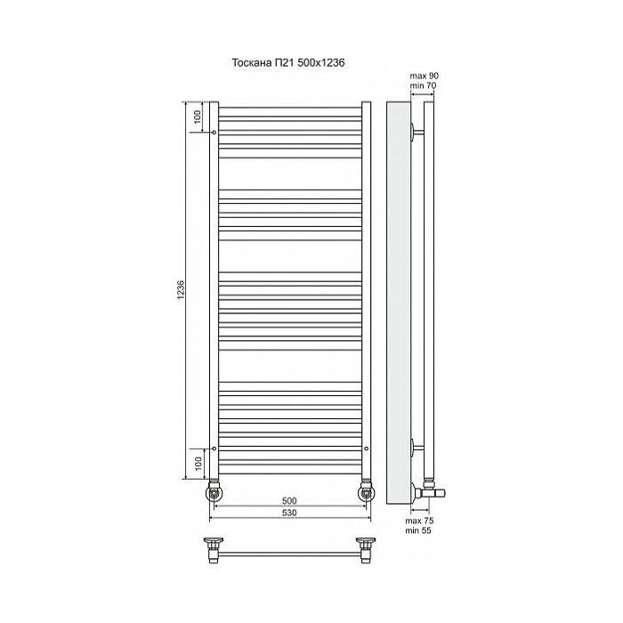 Водяной полотенцесушитель Terminus Тоскана П21 500x1236 4620768886232 Хром
