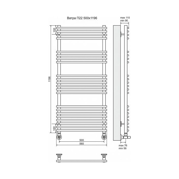 Водяной полотенцесушитель Terminus Ватра П22 500x1196 4620768886621 Хром