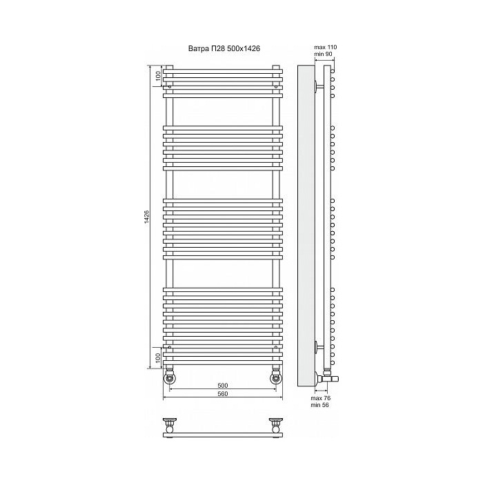 Водяной полотенцесушитель Terminus Ватра П28 500x1426 4620768886614 с нижним подключением. Для производства полотенцесушителя используется только высококачественная нержавеющая сталь марки AISI 304L с высоким содержанием легирующих элементов, Ni и Cr, это позволяет изделиям сохранять стойкость к агрессивным коррозийным средам, что существенно продлевает срок их эксплуатации. Толщина стенки используемой трубы не менее 2 мм, это обеспечивает 10-ти кратный запас прочности, труба устойчива к резким перепадам давления в системе водоснабжения!