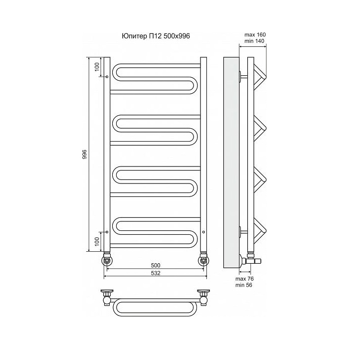 Водяной полотенцесушитель Terminus Юпитер П12 500x996 4620768888847 с нижним подключением. Для производства полотенцесушителя используется только высококачественная нержавеющая сталь марки AISI 304L с высоким содержанием легирующих элементов, Ni и Cr, это позволяет изделиям сохранять стойкость к агрессивным коррозийным средам, что существенно продлевает срок их эксплуатации. Толщина стенки используемой трубы не менее 2 мм, это обеспечивает 10-ти кратный запас прочности, труба устойчива к резким перепадам давления в системе водоснабжения!