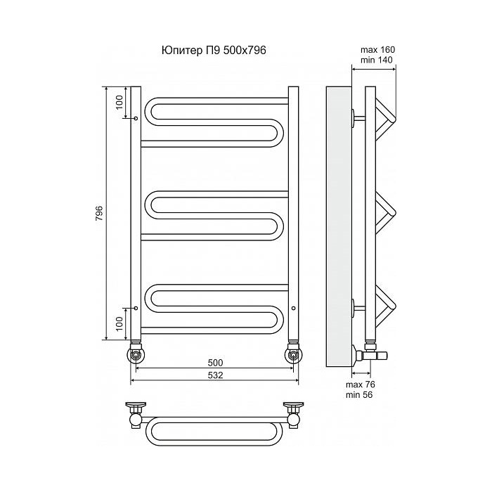 Водяной полотенцесушитель Terminus Юпитер П9 500x796 4620768888854 Хром