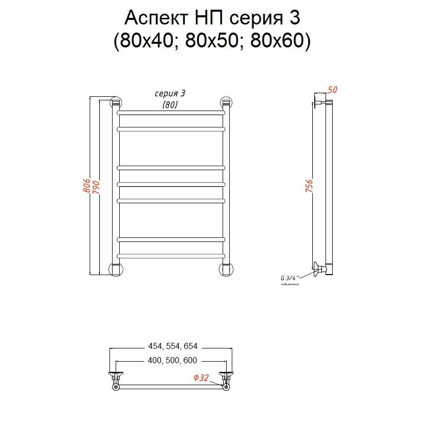 Водяной полотенцесушитель Тругор Аспект 3 НП 80x60 Хром