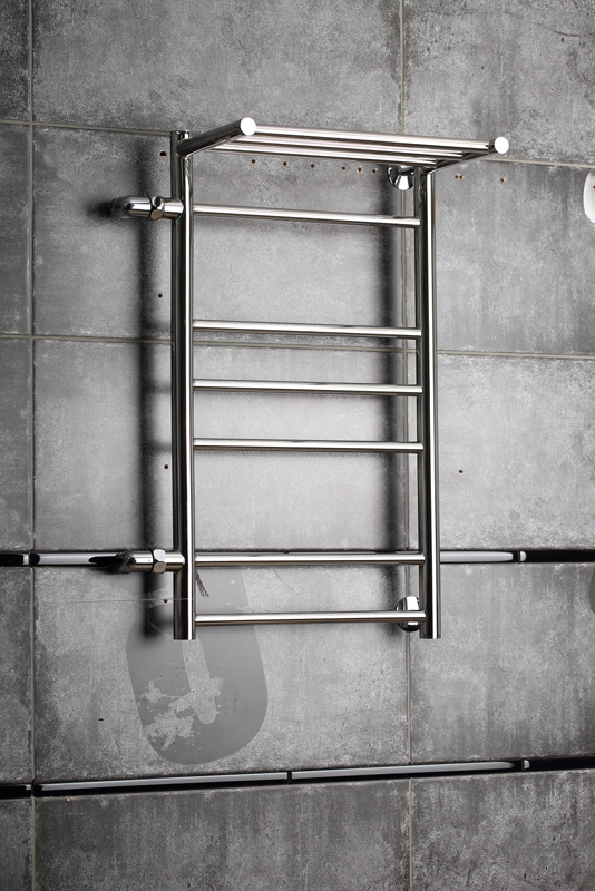 Водяной полотенцесушитель Тругор Аспект 3 П ПМ 80x50 см с полкой, цвет хром. Используется для просушки влажных вещей и полотенец, а также дополнительного обогрева помещения. Изготовлен из пищевой нержавеющей трубы марки AISI 304, которая отличается стойкостью к высоким температурам и образованию коррозии, выдерживает значительные перепады давления.