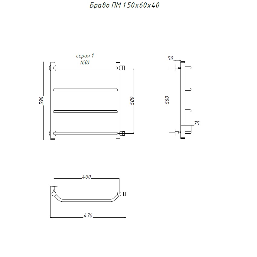 Водяной полотенцесушитель Тругор Браво 1 ПМ 60x40 Хром
