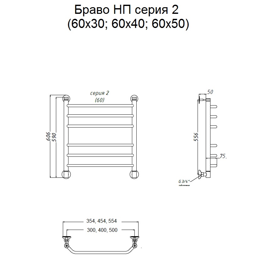 Водяной полотенцесушитель Тругор Браво 2 НП 60x50 Хром