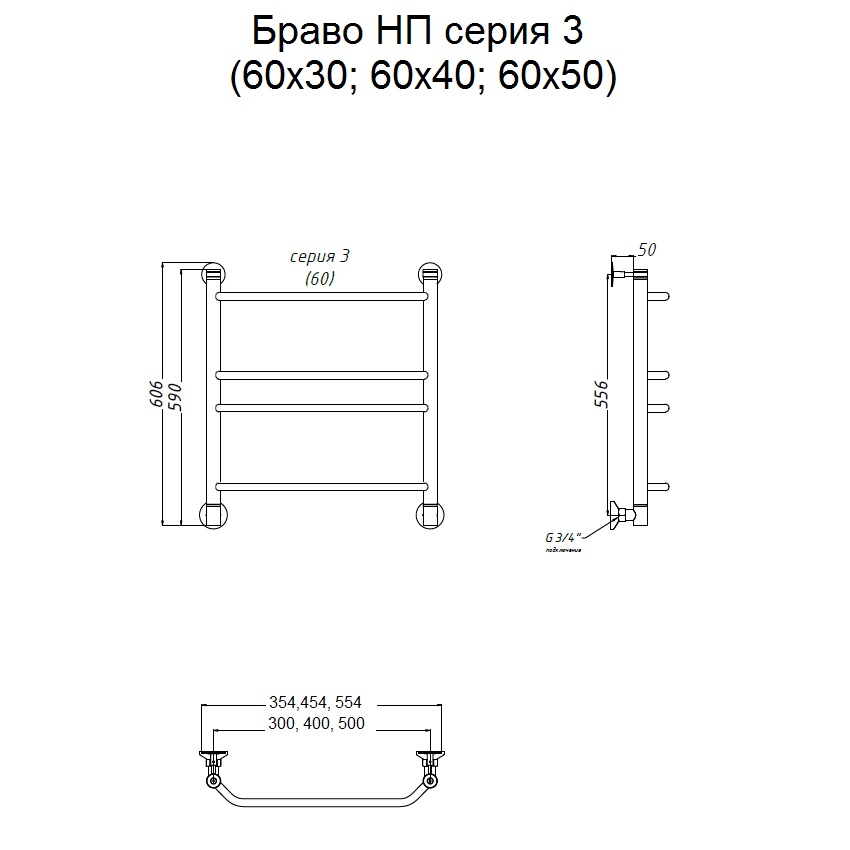 Водяной полотенцесушитель Тругор Браво 3 НП 60x40 Хром
