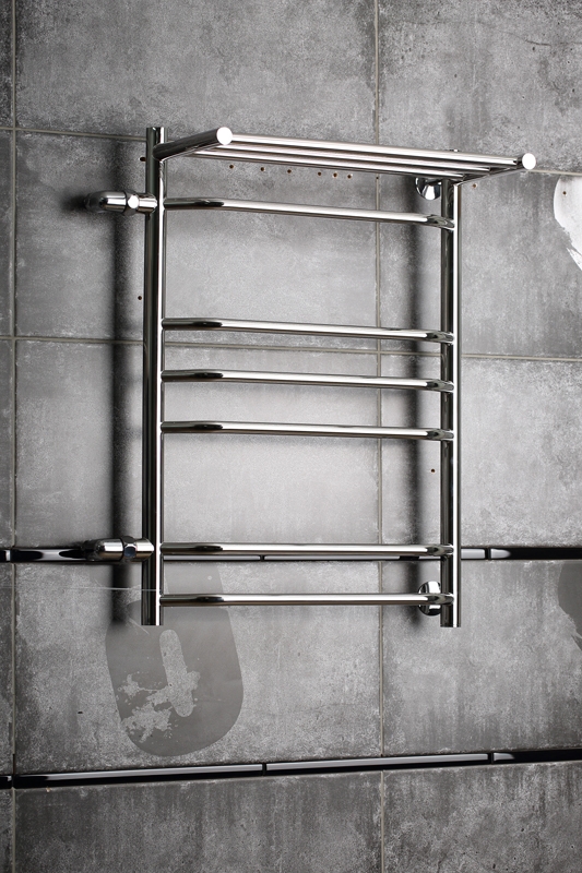 Водяной полотенцесушитель Тругор Браво 3 П ПМ 80x40 см с полкой, цвет хром. Используется для просушки влажных вещей и полотенец, а также дополнительного обогрева помещения. Изготовлен из пищевой нержавеющей трубы марки AISI 304, которая отличается стойкостью к высоким температурам и образованию коррозии, выдерживает значительные перепады давления.