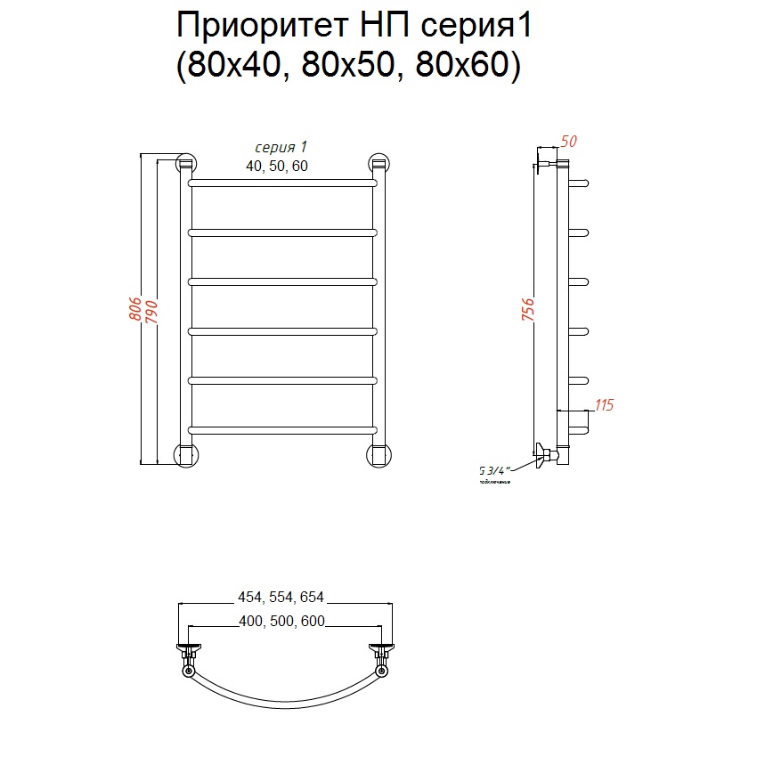 Водяной полотенцесушитель Тругор Приоритет 1 НП 80x40 Хром
