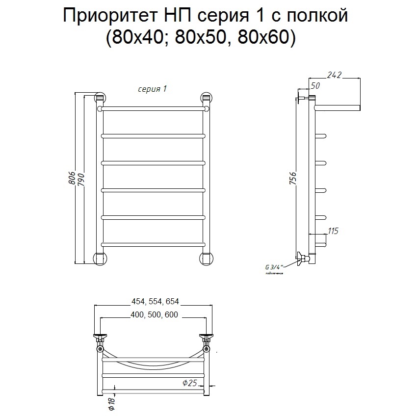 Водяной полотенцесушитель Тругор Приоритет 1 П НП 80x60 с полкой Хром