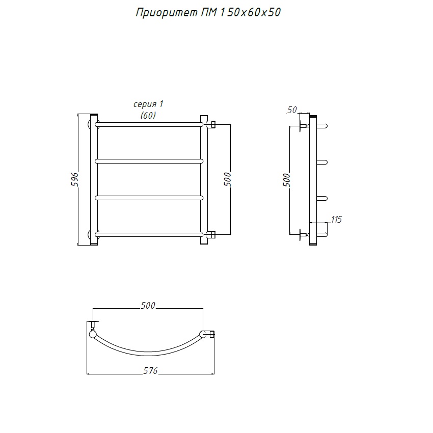 Водяной полотенцесушитель Тругор Приоритет 1 ПМ 60x50 Хром