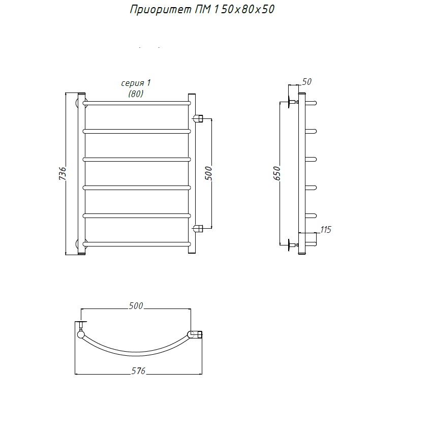 Водяной полотенцесушитель Тругор Приоритет 1 ПМ 80x50 Хром