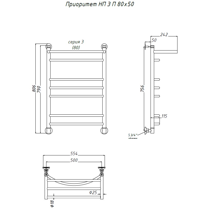 Водяной полотенцесушитель Тругор Приоритет 3 П НП 80x50 с полкой, цвет хром. Используется для просушки влажных вещей и полотенец, а также дополнительного обогрева помещения. Изготовлен из пищевой нержавеющей трубы марки AISI 304, которая отличается стойкостью к высоким температурам и образованию коррозии, выдерживает значительные перепады давления.