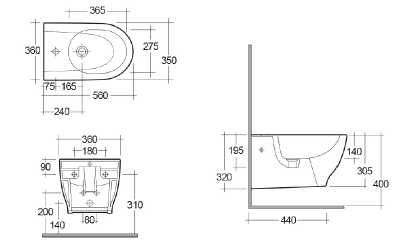 Биде RAK Ceramics Moon HAR08AWHA подвесное Белое