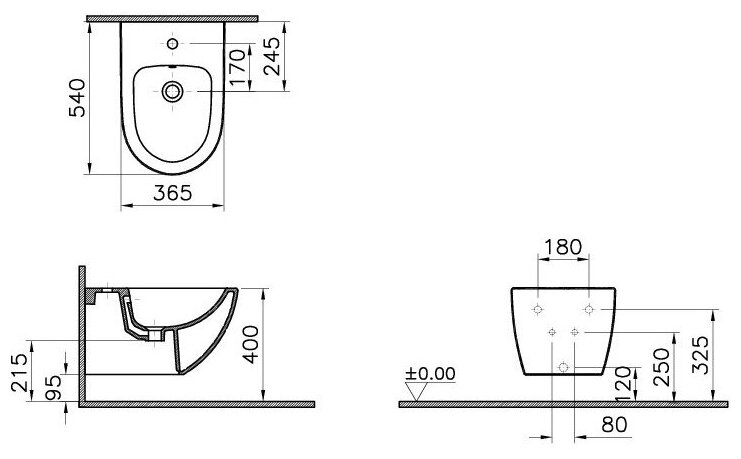 Биде Vitra Sento 4338B003-0288 (4338B003-1046) подвесное.