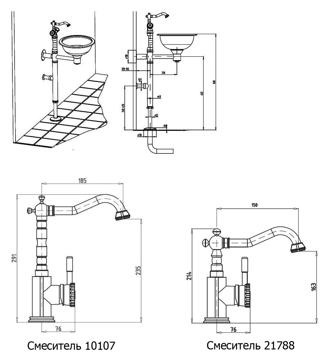 - по желанию возможна замена смесителя на 10107 высотой 29,1 см.