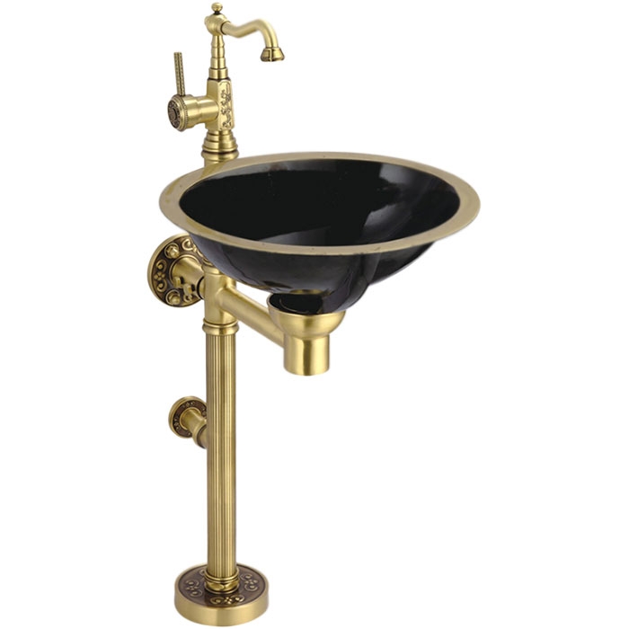 Круглая раковина Bronze de Luxe 40 10110BR на пьедестале. Уникальный дизайн медной раковины с декоративными смесителем и сифоном, на пьедестале бронзового цвета с патинированием, создаст нотки роскоши и утонченности как в домашнем интерьере, так и в спа-салонах, банях, гостиницах.