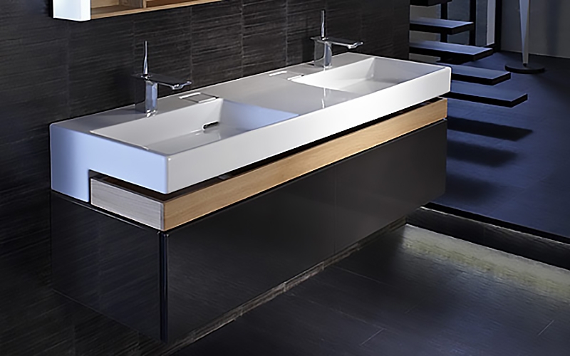 - Инновационная система слива FreeDrain: сливное отверстие находится на задней стенке раковины. Простое нажатие на кнопку закрывает отверстие слива и раковина наполняется водой.