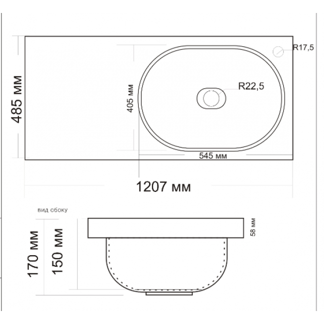 Раковина выполнена из искусственного мрамора, что делает ее износостойкой и простой в уходе.