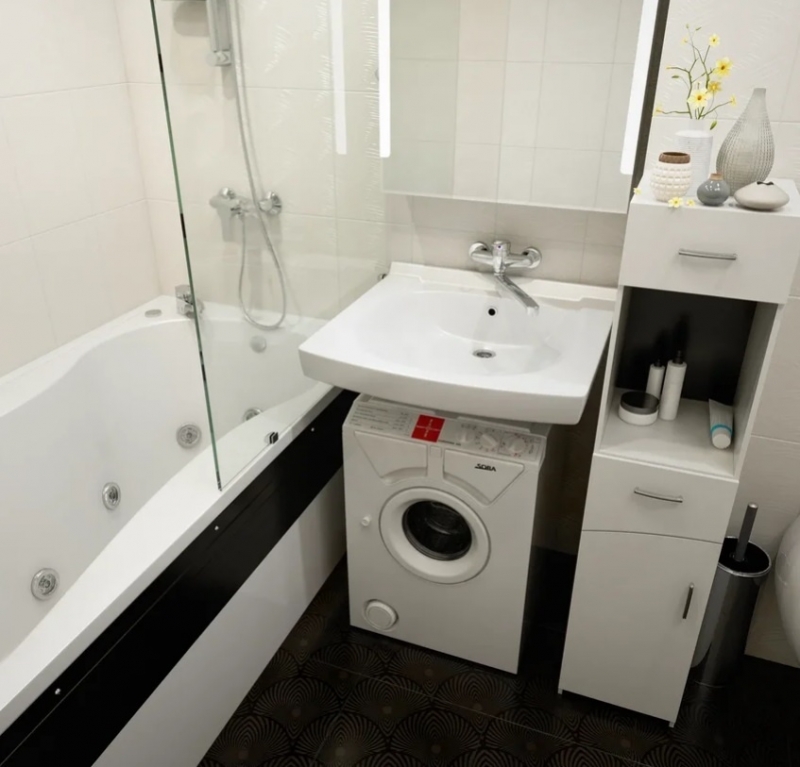 Раковина Кувшинка Элегантс 62 над стиральной машиной.
