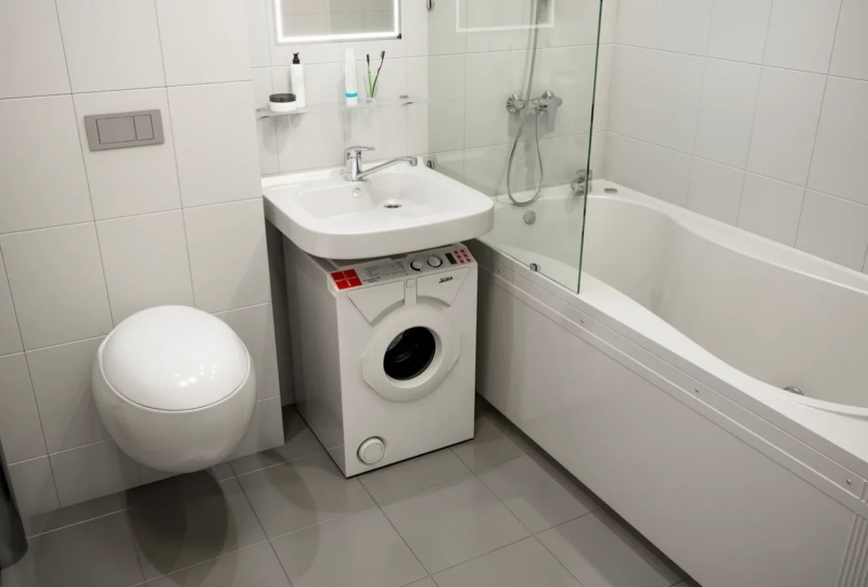 Раковина Кувшинка Юни 50 над стиральной машиной.