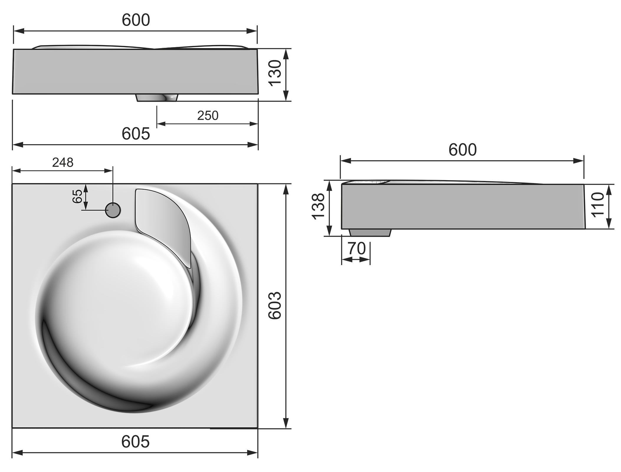 - Размеры (ШхДхВ): 60,5 х 60,3 х 13,8 см.