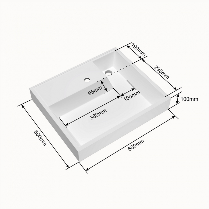 - Габариты раковины ШхГхВ: 600х500х100 мм.