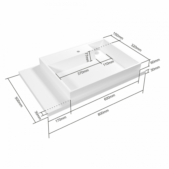 - Габариты столешницы ШхДхВ: 800х500х30 мм.