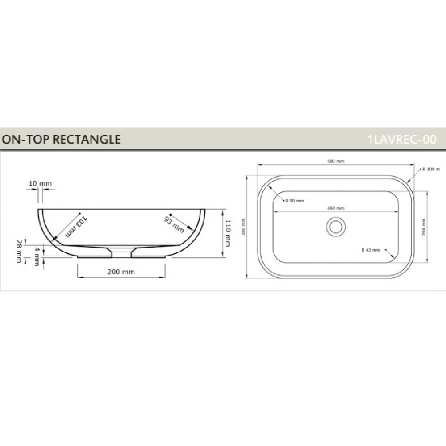 Раковина Acquabella On-Top 58 LAVABO_ON-TOP_RECTANGLE_SLATE Белая