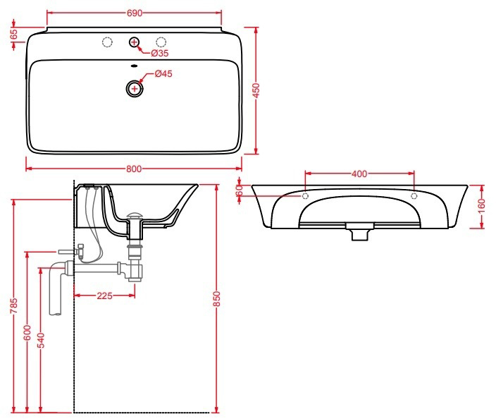 - Диаметр сливного отверстия: 4.5 см.