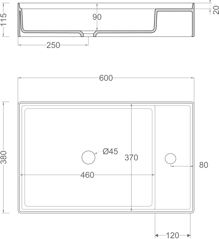 - Размеры (ШxВxГ): 60x11.5x38 см.