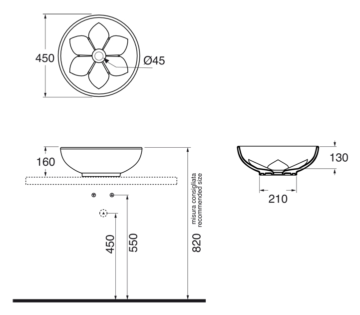 Накладная раковина Azzurra Fleur FLE200 с выпуклым рельефом в виде лепестков цветка.