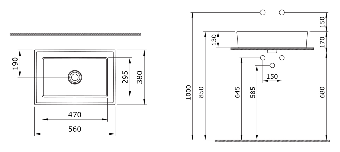 - Монтаж: накладной на столешницу.