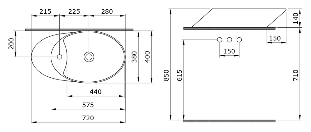 - Монтаж: накладной на столешницу.