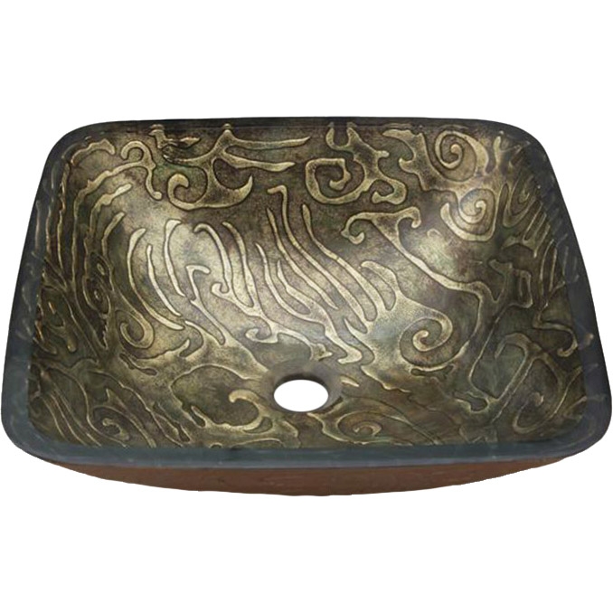 Накладная раковина-чаша Bronze de Luxe 40 12018 из стекла, стилизованная под бронзовую ковку. Раковина выполнена в ярком оригинальном дизайне. Она изготовлена из закаленного стекла украшенного цветным рисунком, устойчива к механическим воздействиям и перепадам температур. Благодаря стильному дизайну раковина-чаша отлично впишется в интерьер ванной комнаты в любом стилистическом оформлении.