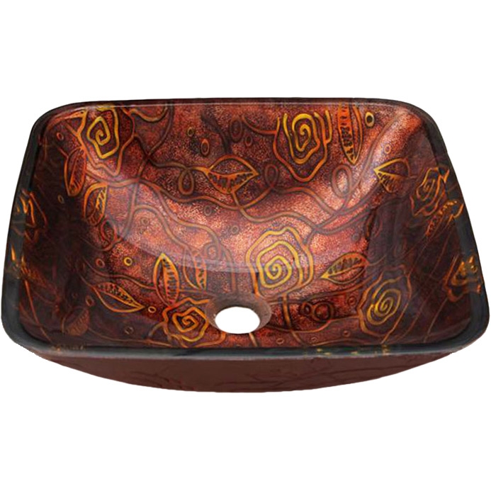 Накладная раковина-чаша Bronze de Luxe 40 12133 из стекла, стилизованная под медную ковку. Раковина выполнена в ярком оригинальном дизайне. Она изготовлена из закаленного стекла украшенного цветным рисунком, устойчива к механическим воздействиям и перепадам температур. Благодаря стильному дизайну раковина-чаша отлично впишется в интерьер ванной комнаты в любом стилистическом оформлении.