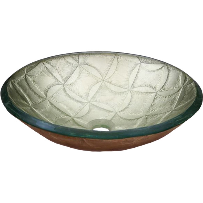 Накладная раковина-чаша Bronze de Luxe 45 12108 из цветного стекла. Раковина выполнена в оригинальном дизайне. Она изготовлена из закаленного стекла украшенного рельефным орнаментом, устойчива к механическим воздействиям и перепадам температур. Благодаря стильному дизайну раковина-чаша отлично впишется в интерьер ванной комнаты в любом стилистическом оформлении.