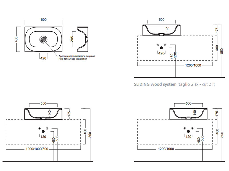 - Размер (ШхДхВ): 60 x 40 х 17,5 см. Глубина чаши: 14 см.
